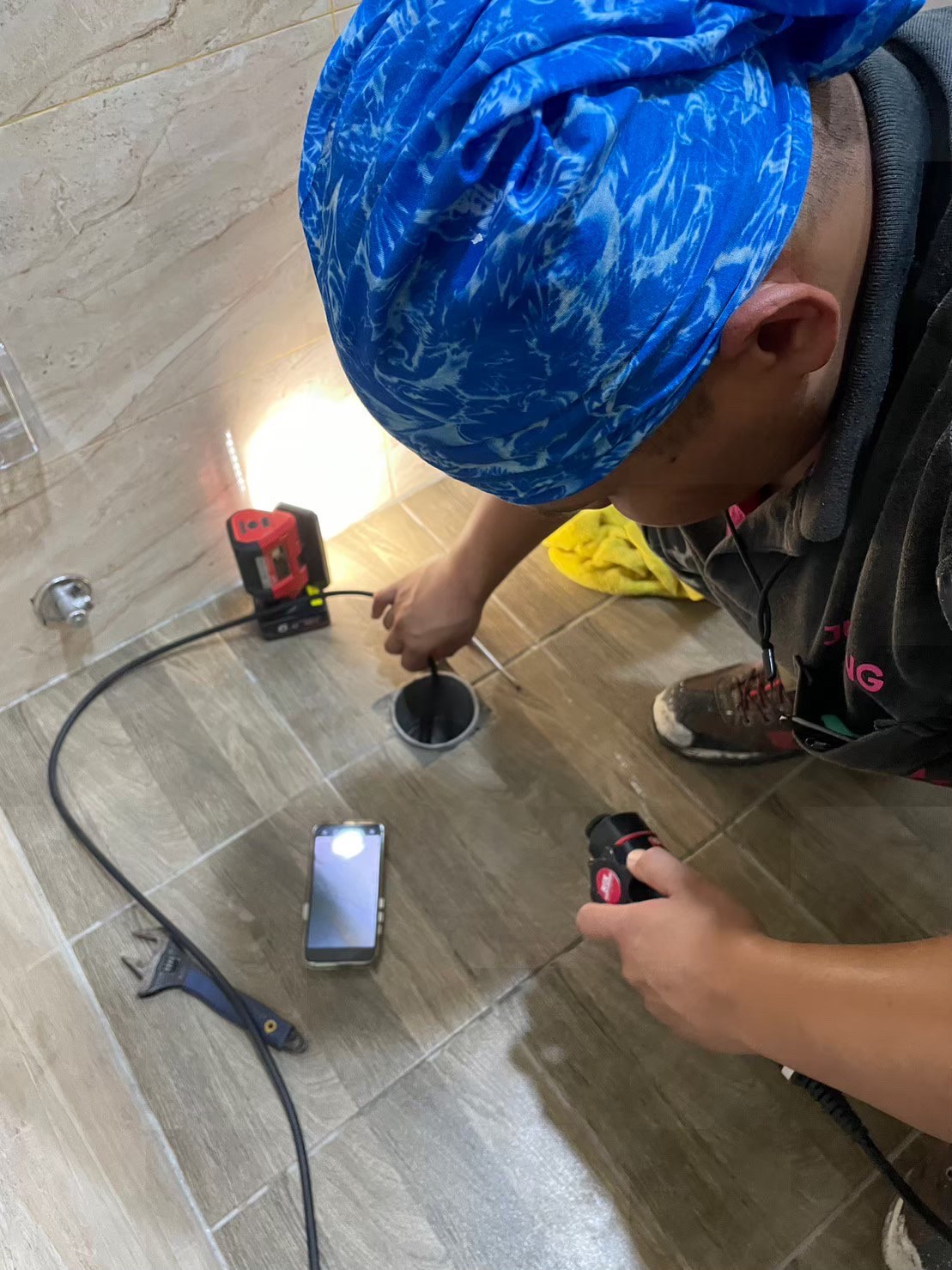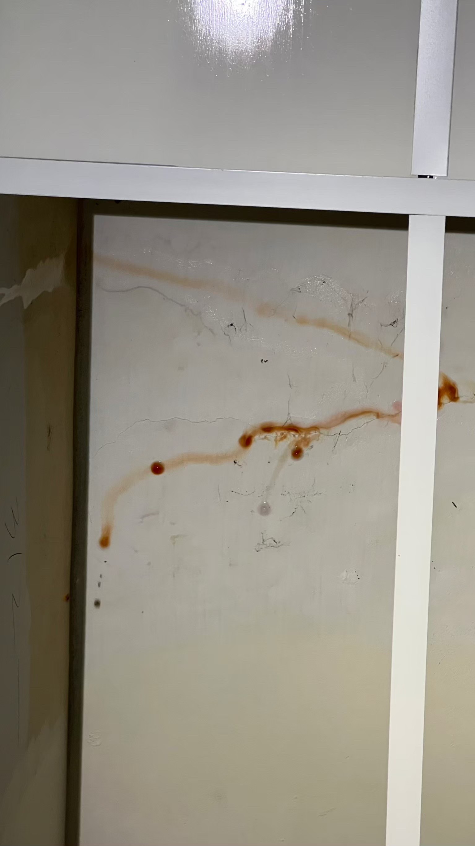 來到了台中豐原抓漏,老闆表示應該是排水管破裂,使用洗衣機後就漏水,造成2樓梯間天花板滲水,經過跟老闆解釋後,決定實施檢測工程後再進行修復工程,果然最後使用食用色素後,驗證了不是生活廢水管漏水,卻是污水管(俗稱糞管)漏水,使用內視鏡定位出破損正確位置,使用非破壞性科技修復工法,公司自行研發的油性樹脂進行修復。